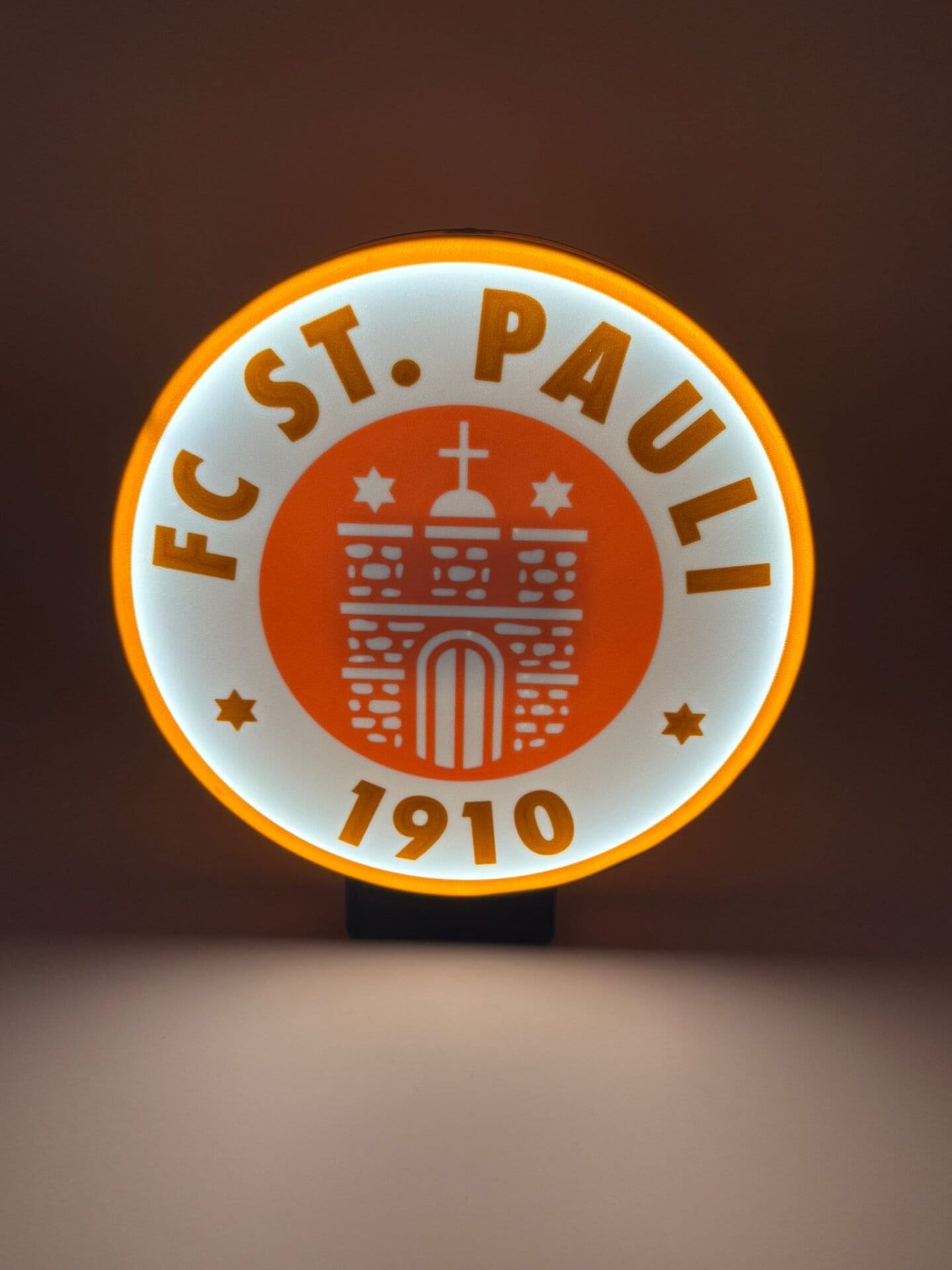 Die Lampe zeigt das ikonische St. Pauli-Logo und erzeugt ein angenehmes, warmes Licht, das sich ideal für das Wohnzimmer, den Schreibtisch oder das Schlafzimmer eignet. Mit ihrem klaren, zeitlosen Design ist sie ein perfektes Highlight in jedem Raum – egal ob als Dekoration oder praktische Lichtquelle.
